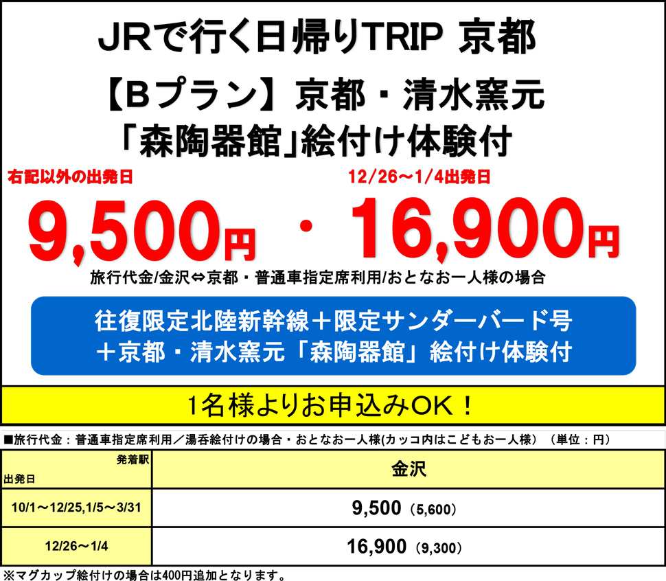 (JR京都駅⇔森陶器館 間の交通費は旅行代金に含まれません)