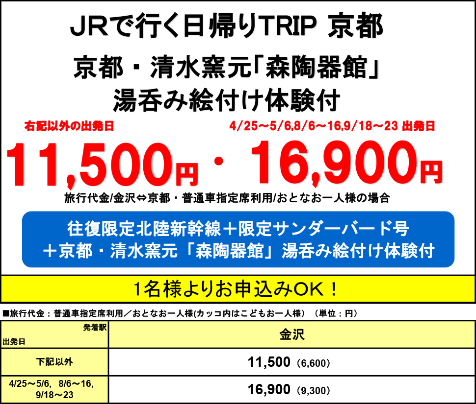(JR京都駅⇔森陶器館 間の交通費は旅行代金に含まれません)