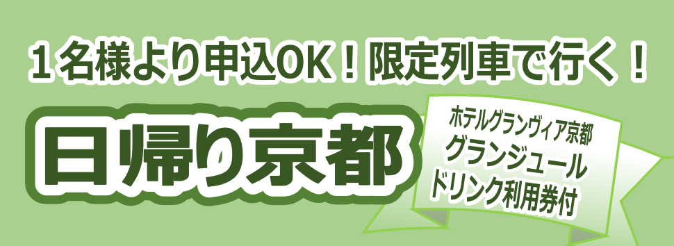 ※旅行代金には北陸各駅⇔京都駅の往復のJR指定席と、ホテルグランヴィア京都 ロビーラウンジ「グランジュール」でのドリンク利用券が含まれております。お客様のご都合でご利用にならない場合も、返金はございません。