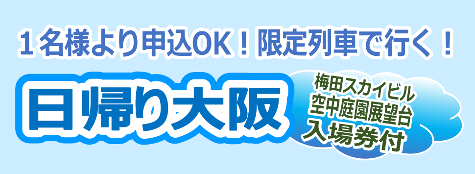 ※旅行代金には北陸各駅⇔大阪駅の往復のJR指定席と、梅田スカイビル空中庭園展望台入場券が含まれております。お客様のご都合でご利用にならない場合も、返金はございません。