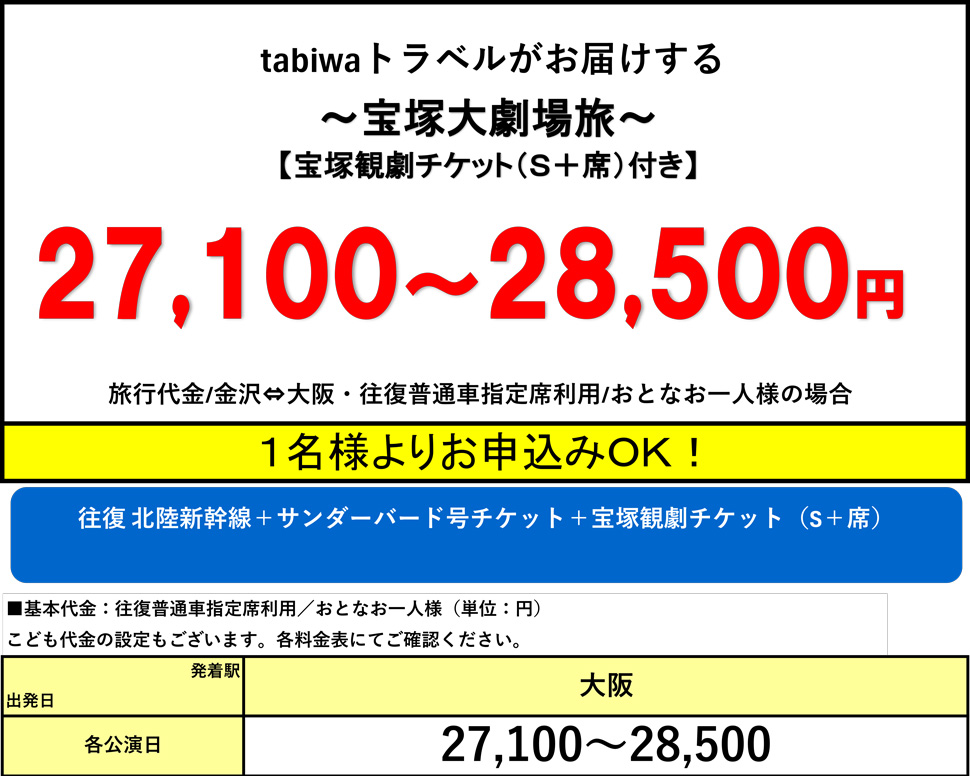 ・大阪駅から会場までの交通費は旅行代金に含まれておりません。