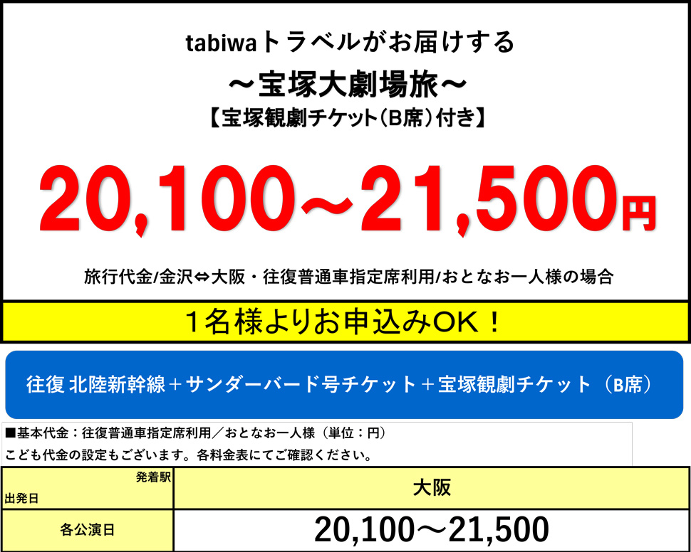 ・おとな(中学生以上)・こども(3歳以上小学生以下)の設定となります。(3歳以上から宝塚大劇場の座席が必要となります。)