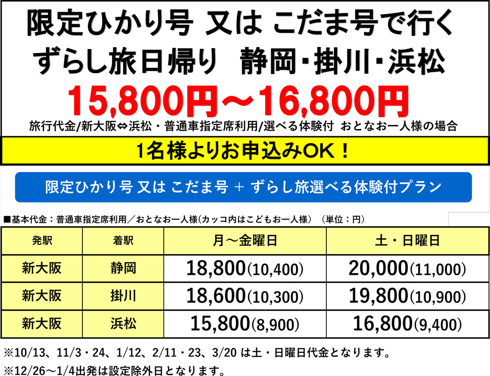 ※日帰りプランは切符ではありません。日帰りの募集型企画旅行です。お申し込みの前に必ず