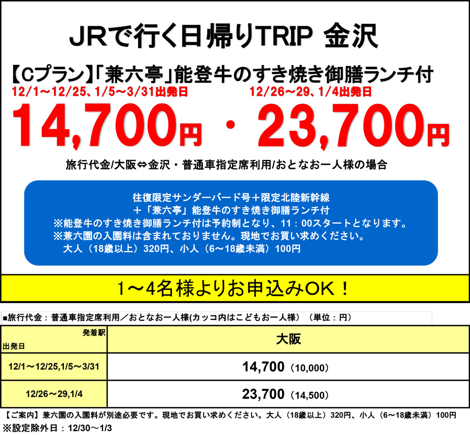 ※日帰りプランは切符ではありません。日帰りの募集型企画旅行です。お申し込みの前に必ず