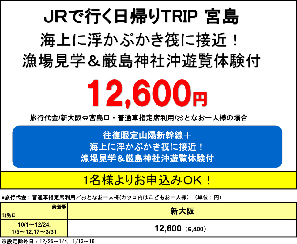 ※日帰りプランは切符ではありません。日帰りの募集型企画旅行です。お申し込みの前に必ず