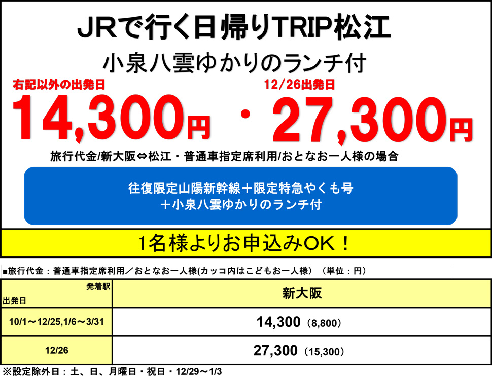 ※日帰りプランは切符ではありません。日帰りの募集型企画旅行です。お申し込みの前に必ず