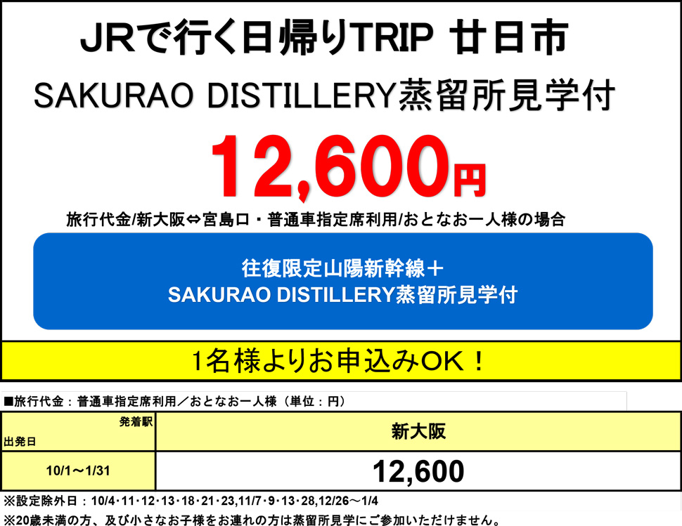 ※日帰りプランは切符ではありません。日帰りの募集型企画旅行です。お申し込みの前に必ず