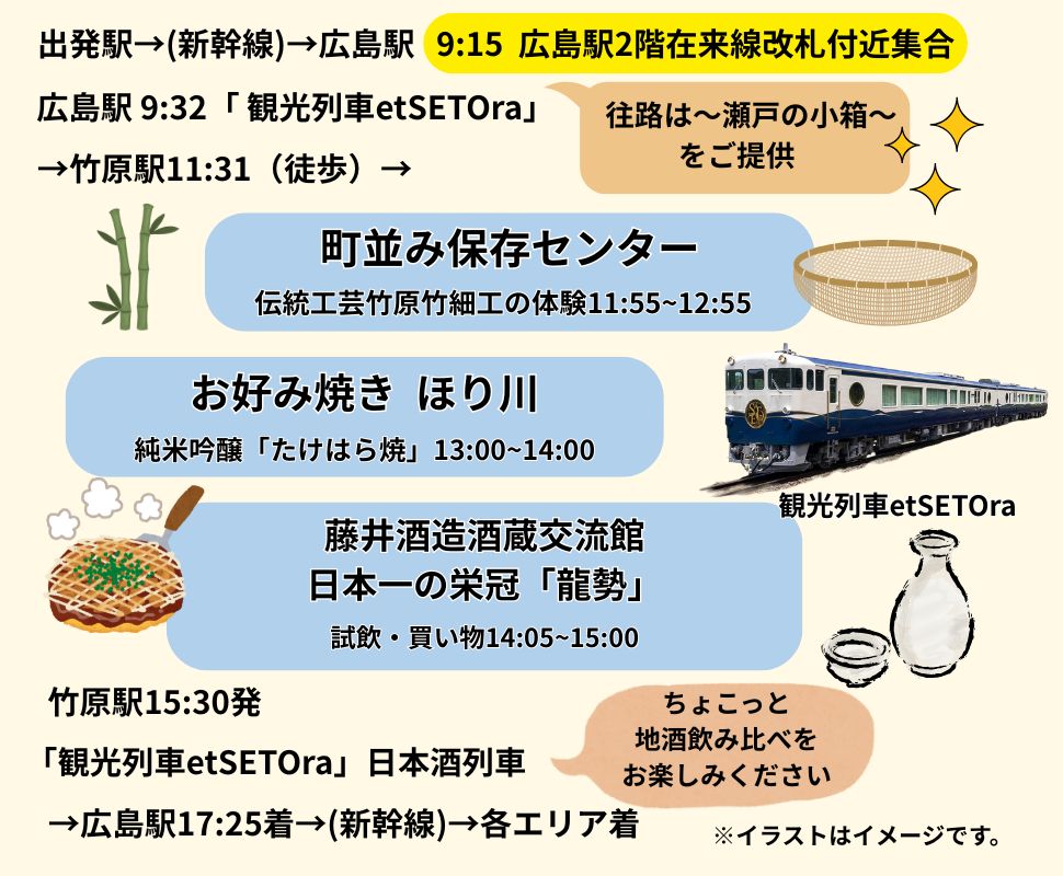 観光列車etSETOra(エトセトラ)に乗って広島県竹原市へ。