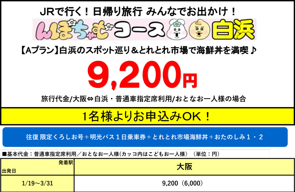 ※当プランは日帰りの募集型企画旅行です。お申し込みの前に必ず
