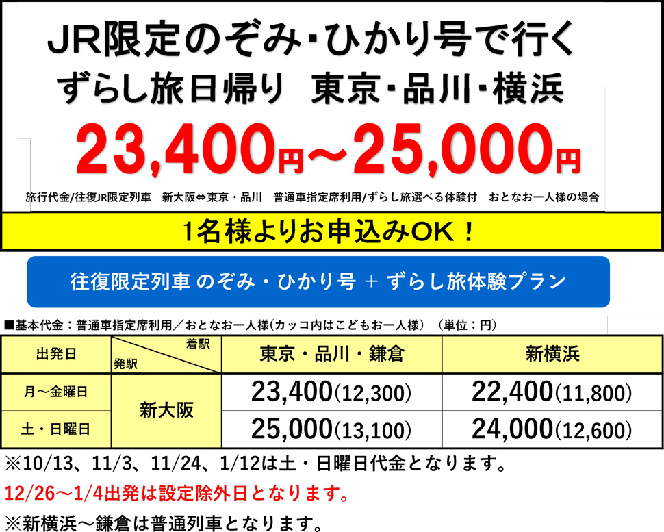 ※日帰りプランは切符ではありません。日帰りの募集型企画旅行です。お申し込みの前に必ず