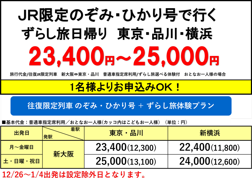 ※日帰りプランは切符ではありません。日帰りの募集型企画旅行です。お申し込みの前に必ず