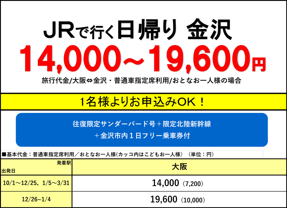 ※日帰りプランは切符ではありません。日帰りの募集型企画旅行です。お申し込みの前に必ず