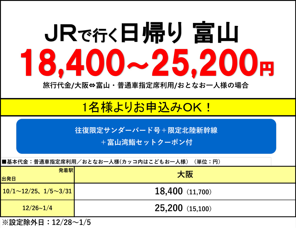 ※日帰りプランは切符ではありません。日帰りの募集型企画旅行です。お申し込みの前に必ず