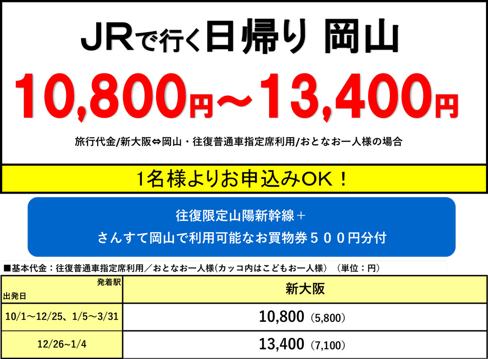 ※日帰りプランは切符ではありません。日帰りの募集型企画旅行です。お申し込みの前に必ず