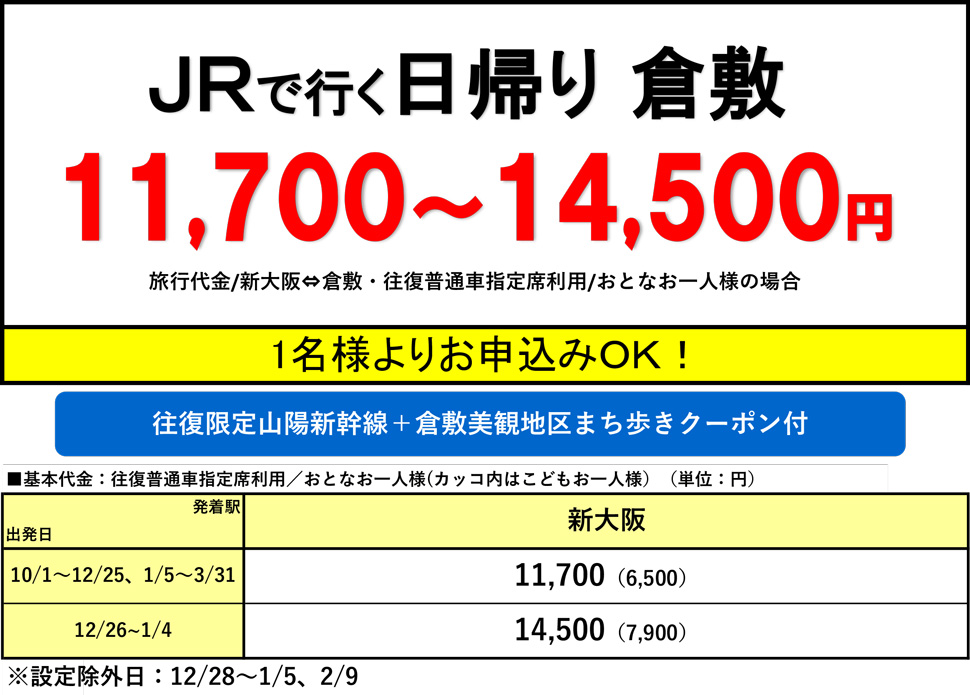 ※日帰りプランは切符ではありません。日帰りの募集型企画旅行です。お申し込みの前に必ず