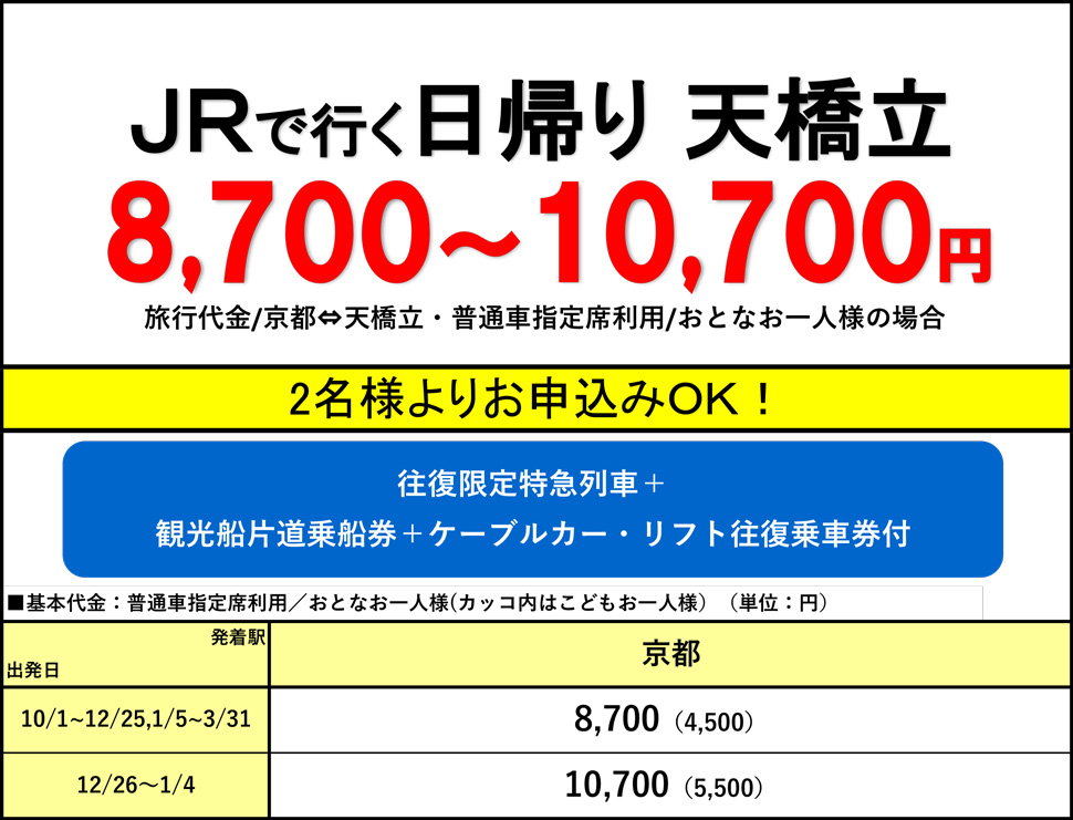 ※日帰りプランは切符ではありません。日帰りの募集型企画旅行です。お申し込みの前に必ず