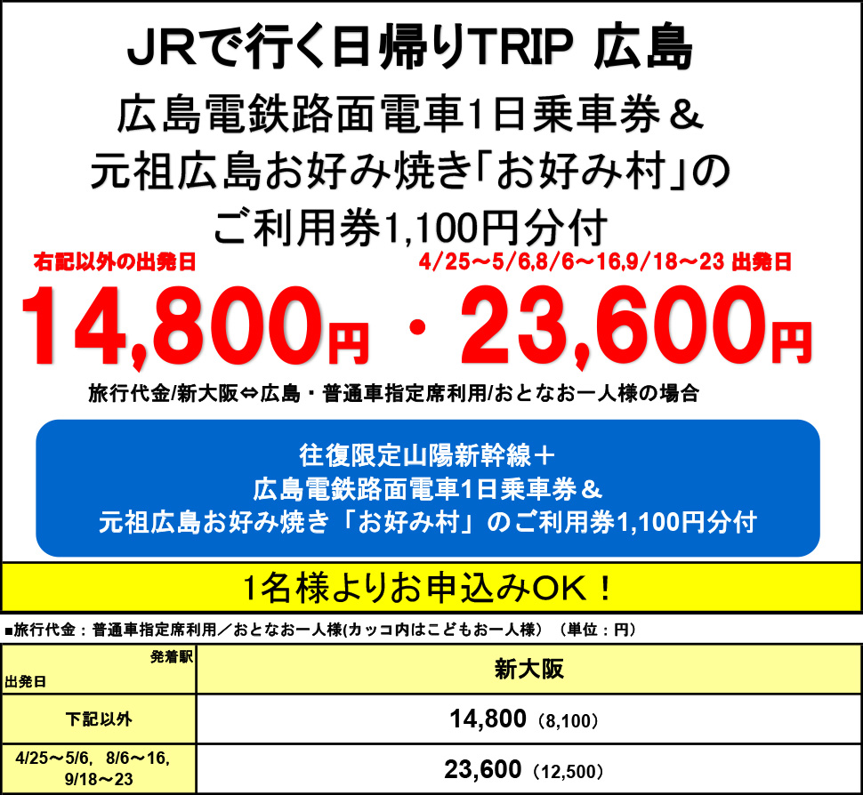 ※日帰りプランは切符ではありません。日帰りの募集型企画旅行です。お申し込みの前に必ず
