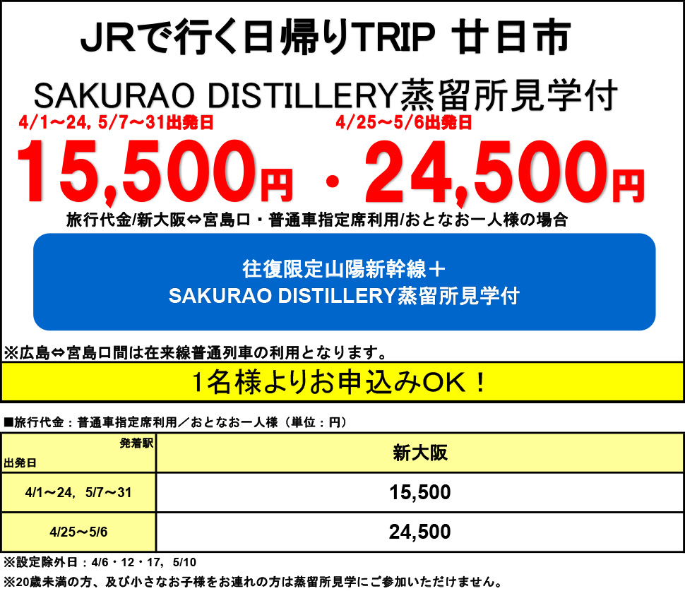 ※日帰りプランは切符ではありません。日帰りの募集型企画旅行です。お申し込みの前に必ず