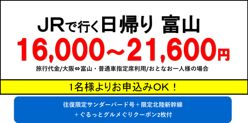 ※日帰りプランは切符ではありません。日帰りの募集型企画旅行です。お申し込みの前に必ず