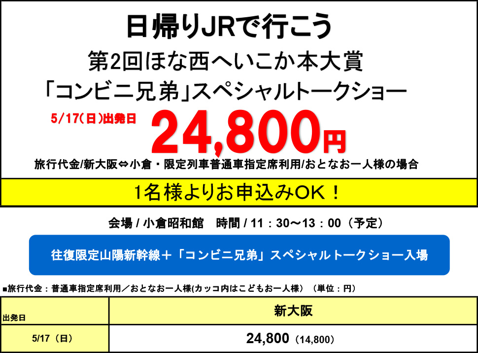 ※「第2回ほな西へいこか本大賞『コンビニ兄弟』スペシャルトークショー」は、株式会社JR西日本コミュニケーションズが企画・実施するイベントとなります。