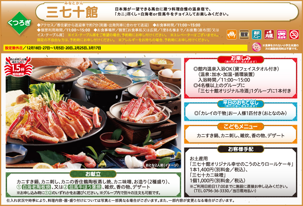 <アクセス>香住駅から送迎車で約7分(到着・出発列車に合わせて送迎)(予約不要)