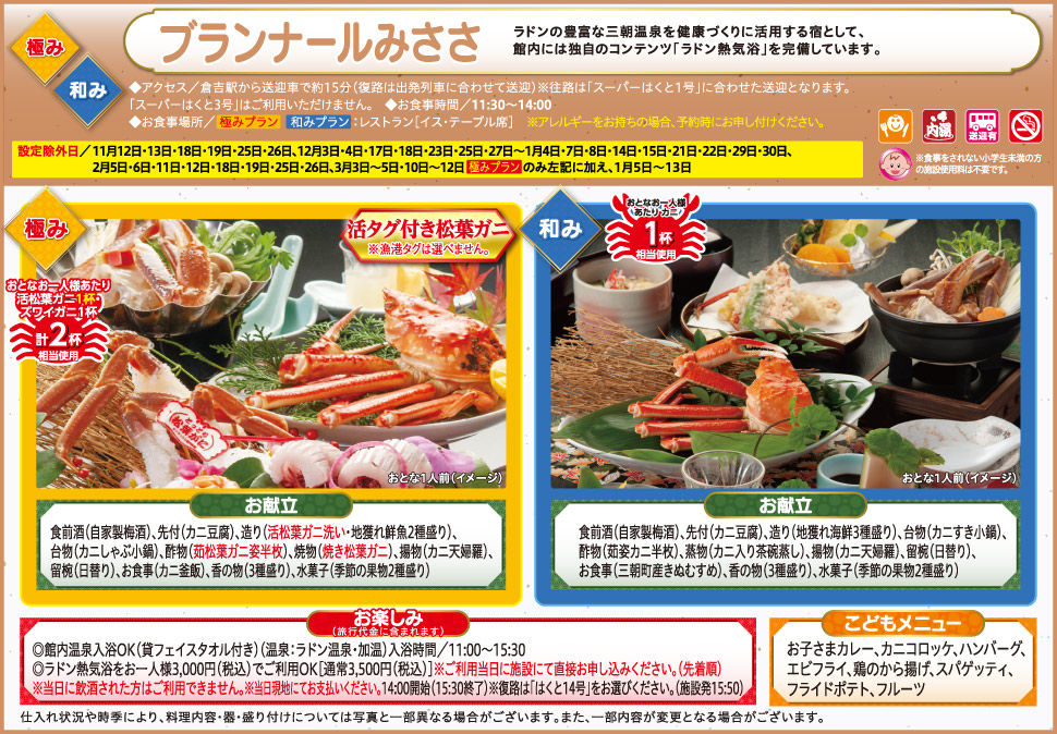 日帰りプランの案内について