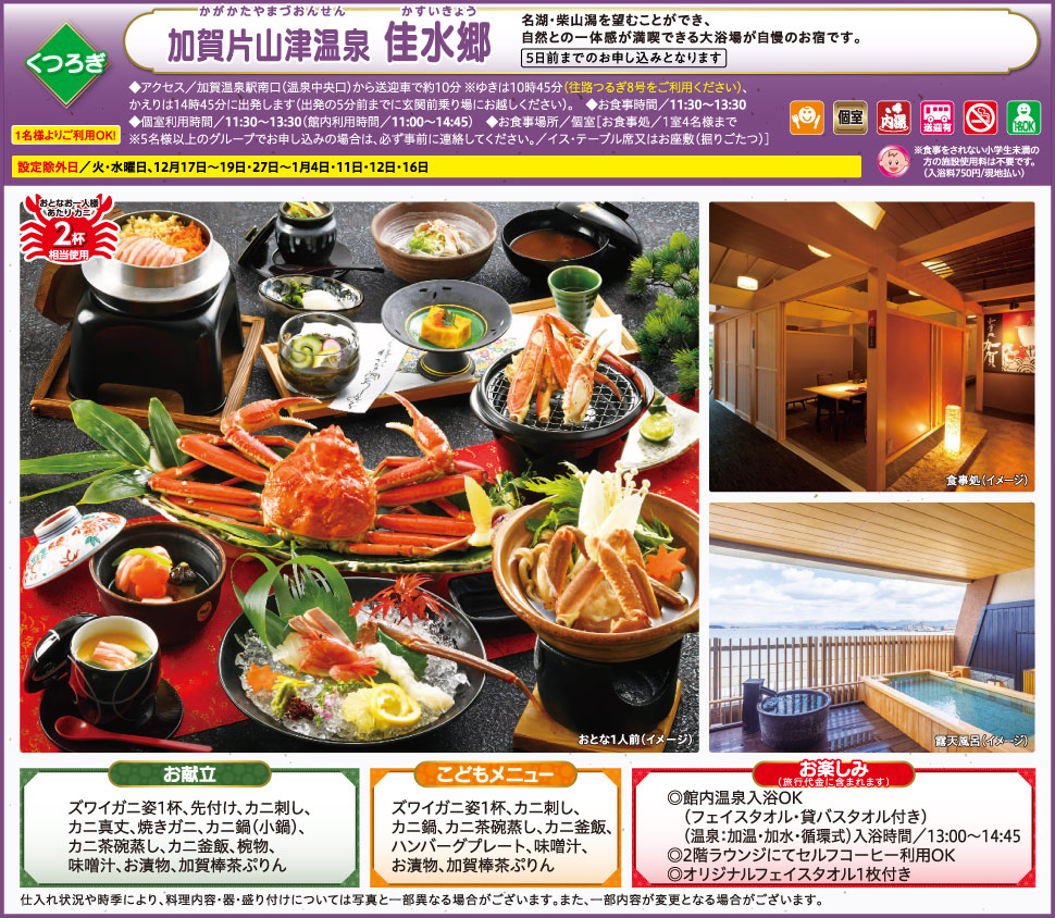 ※食事をされない小学生未満の方の施設使用料は不要です。(入浴料750円が必要です/当日現地払い)