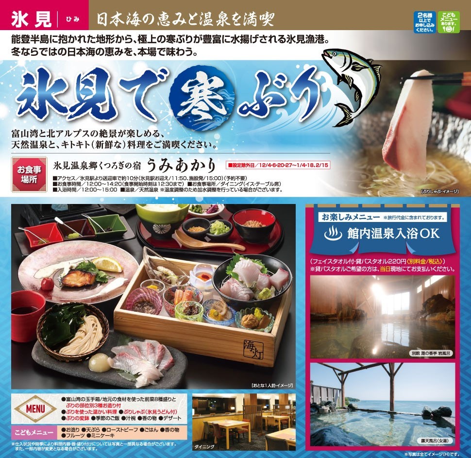 氷見駅より送迎車で約10分(氷見駅お迎え/11:50、施設発15:00)(予約不要)