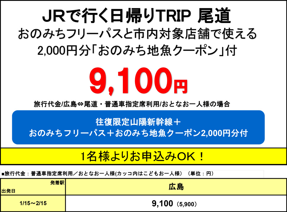 ※尾道発の日帰り行程でご予約いただいた場合は、お取消させていただく場合がございます。