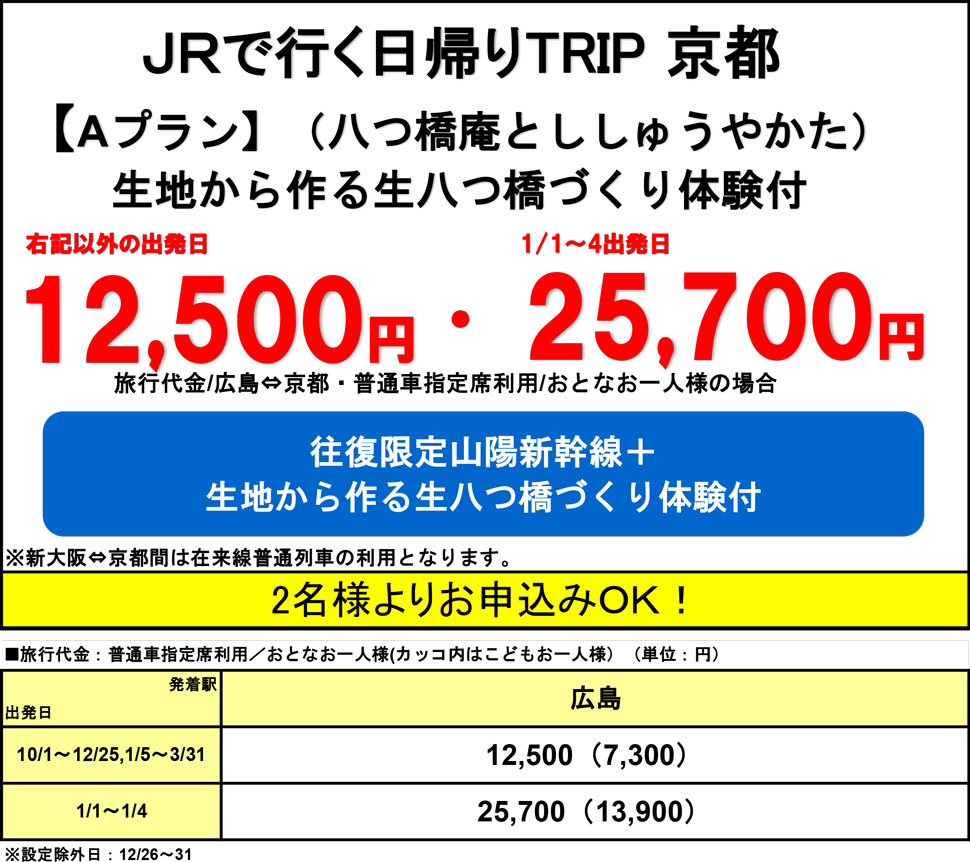 (JR京都駅⇔八つ橋庵ししゅうやかた間の交通費は旅行代金に含まれません)