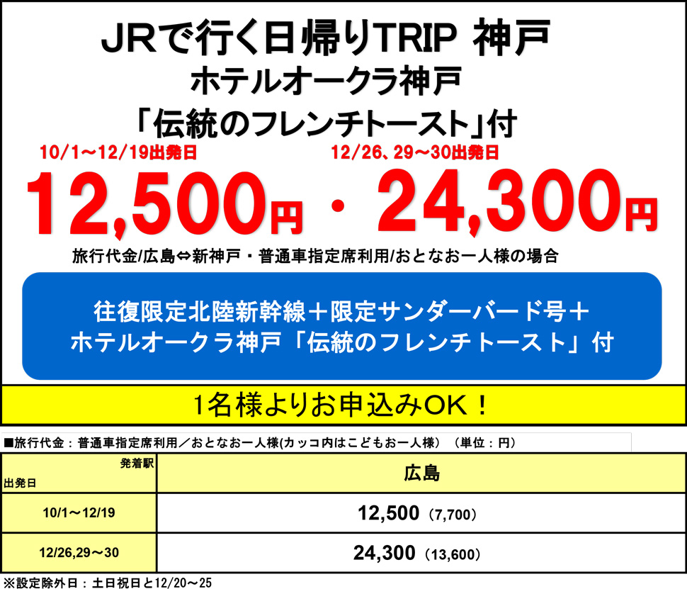 ※こちらの商品は切符ではありません。日帰りの募集型企画旅行です。お申し込みの前に必ずご案内文や旅行条件書をご確認ください。