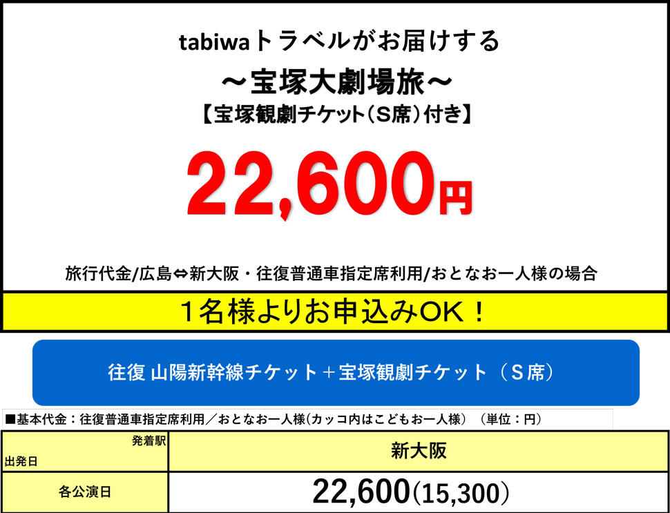 ・新大阪駅から会場までの交通費は旅行代金に含まれておりません。