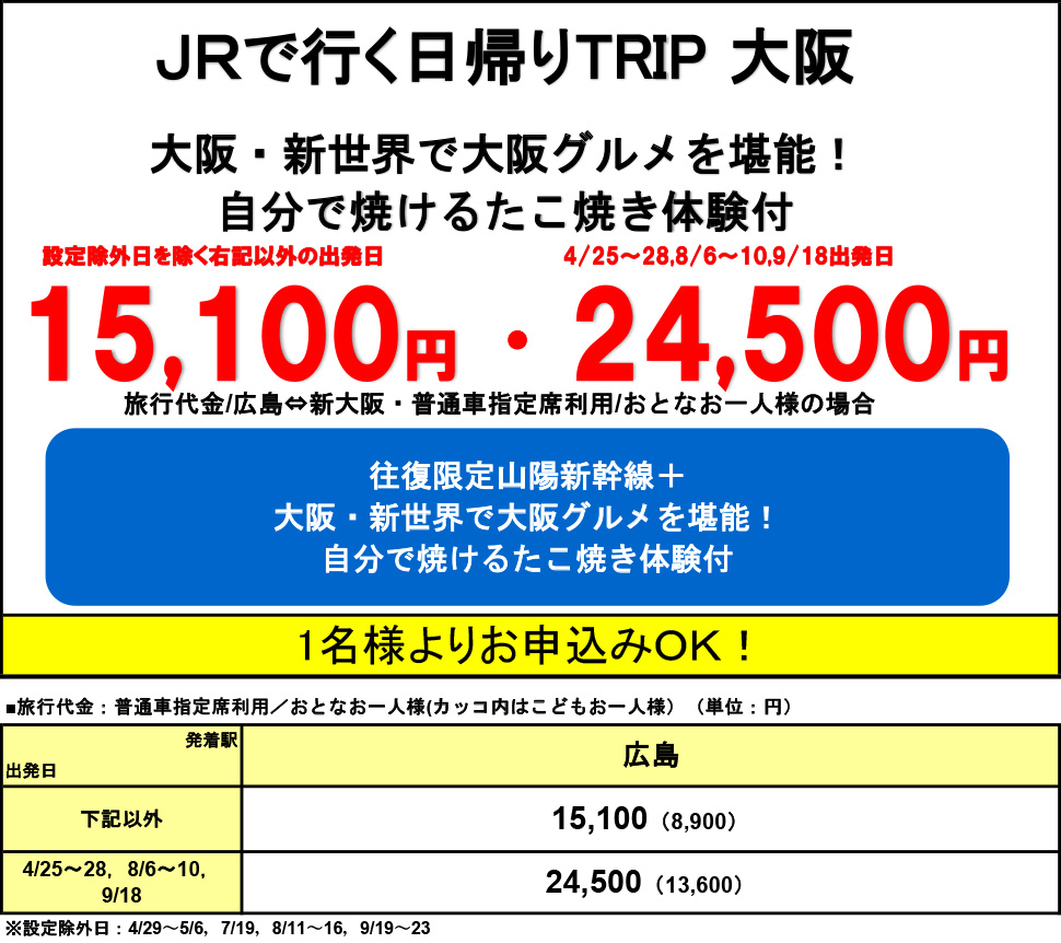 ※関西発の日帰り行程でご予約いただいた場合は、お取消させていただく場合がございます。