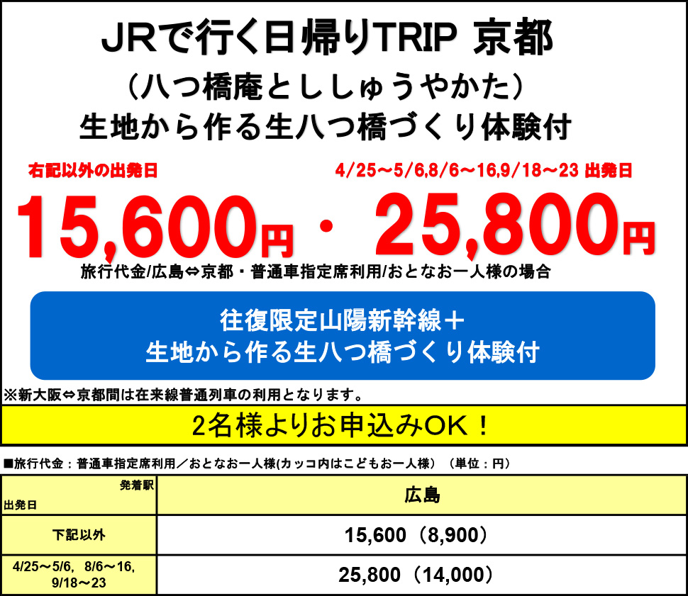 (JR京都駅⇔八つ橋庵ししゅうやかた間の交通費は旅行代金に含まれません)