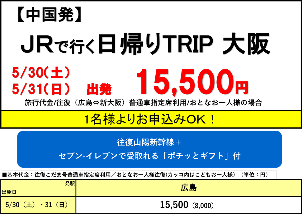 ※当商品は日帰りの募集型企画旅行です。お申し込みの前に必ず