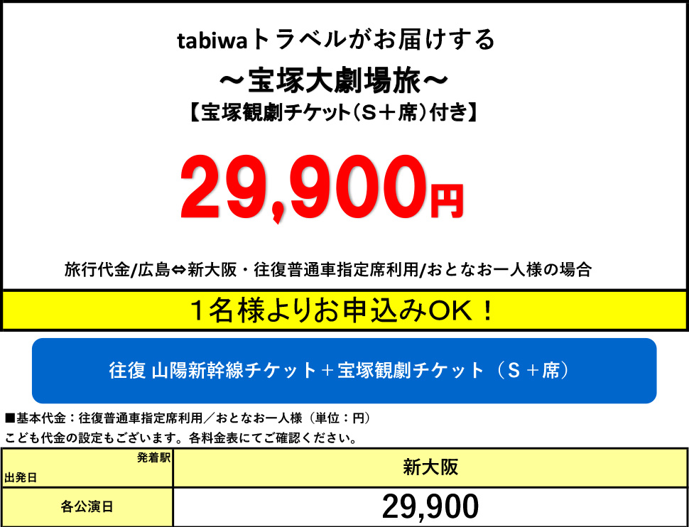・おとな(中学生以上)・こども(3歳以上小学生以下)の設定となります。(3歳以上から宝塚大劇場の座席が必要となります。)