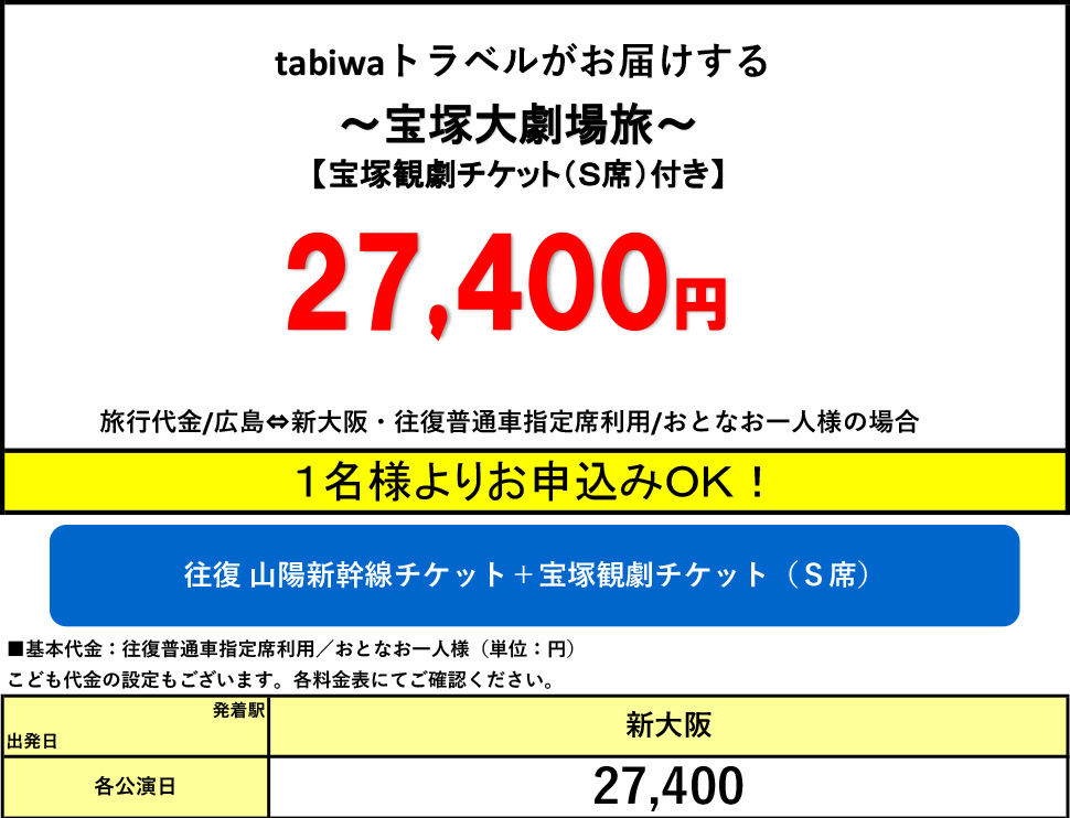 ・おとな(中学生以上)・こども(3歳以上小学生以下)の設定となります。(3歳以上から宝塚大劇場の座席が必要となります。)