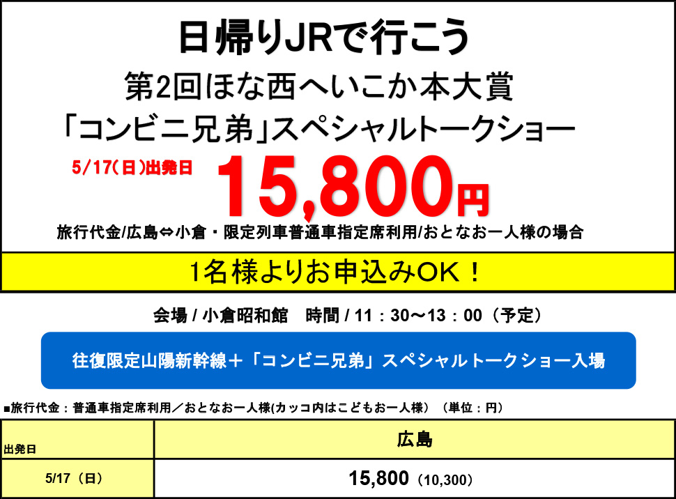※「第2回ほな西へいこか本大賞『コンビニ兄弟』スペシャルトークショー」は、株式会社JR西日本コミュニケーションズが企画・実施するイベントとなります。
