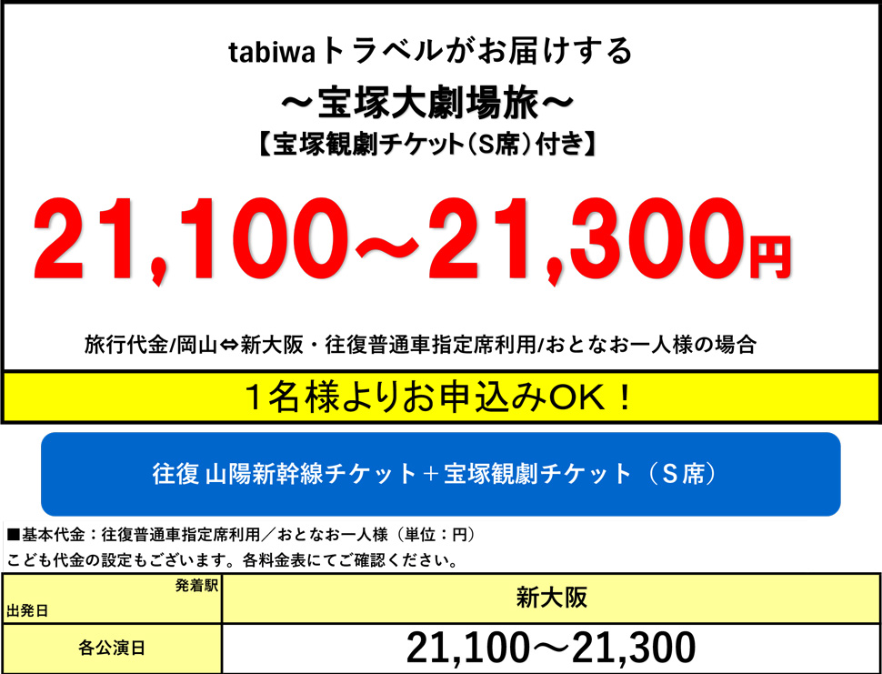 ※新大阪駅から宝塚大劇場までは約60分かかります。