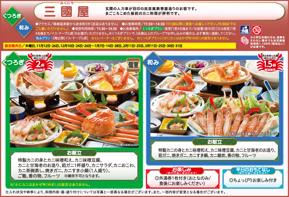 ※くつろぎプランに「かにカニはまかぜ号(ゆき)」の設定はありません。
