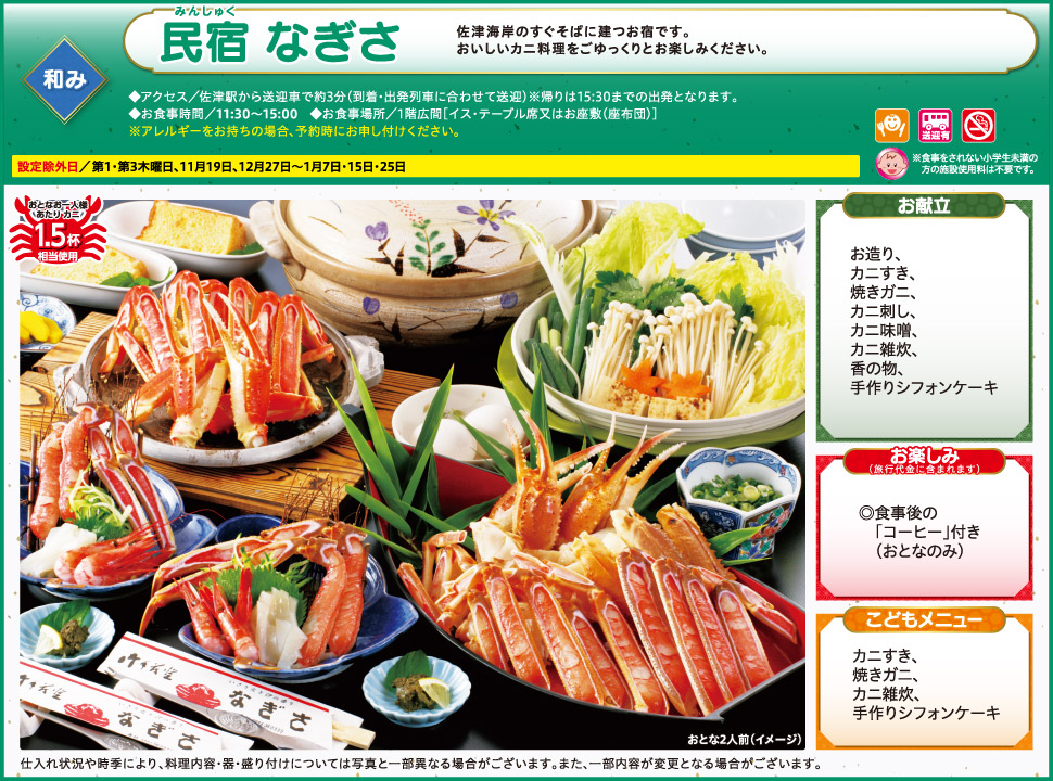 <アクセス>佐津駅から送迎車で約3分(到着・出発列車に合わせて送迎)(予約不要)※帰りは15:30までの出発となります。