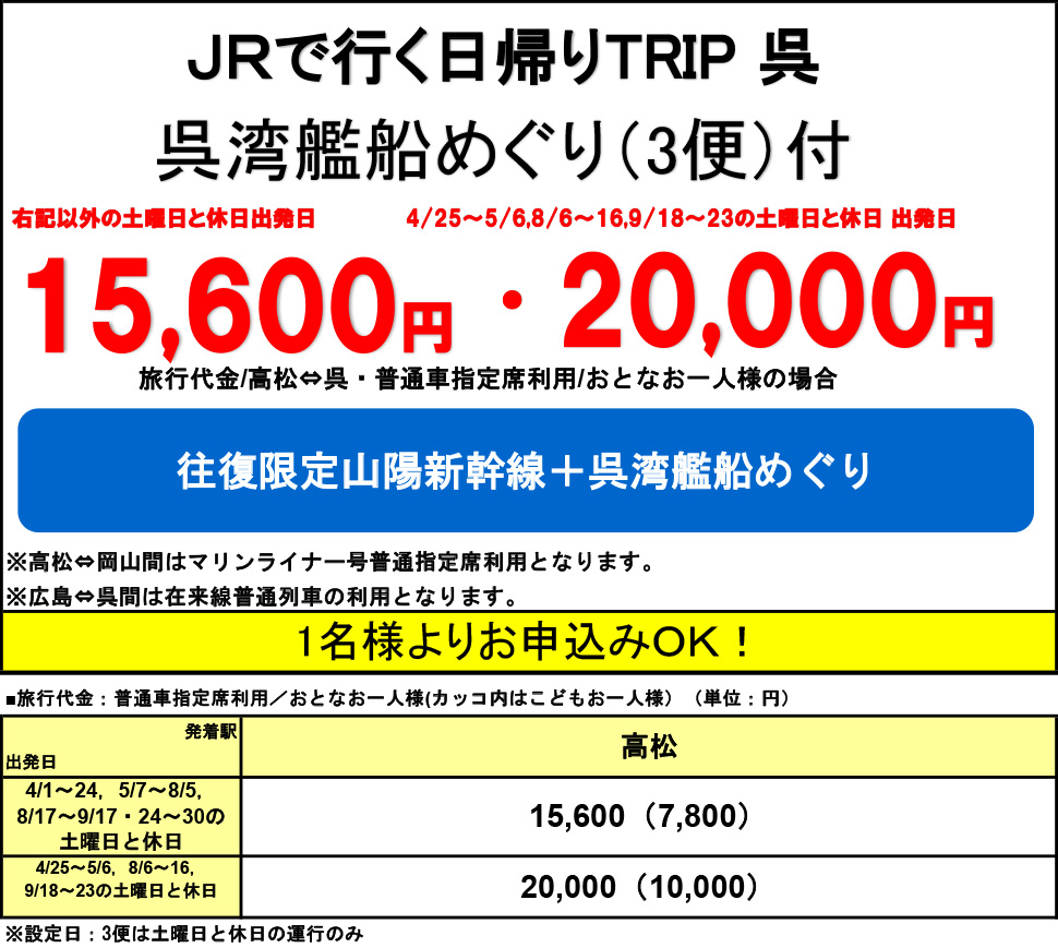 ※日帰りプランは切符ではありません。日帰りの募集型企画旅行です。お申し込みの前に必ず