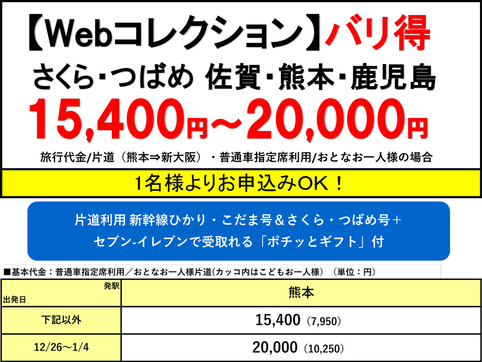 【Webコレクション】山陽新幹線ひかり・こだま・つばめ・さくら限定プラン☆バリ得 佐賀・熊本・鹿児島