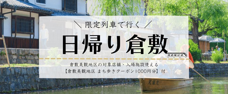 1名様よりお申込みOK★【倉敷まちあるきクーポン付】限定列車で行く日帰り「倉敷」