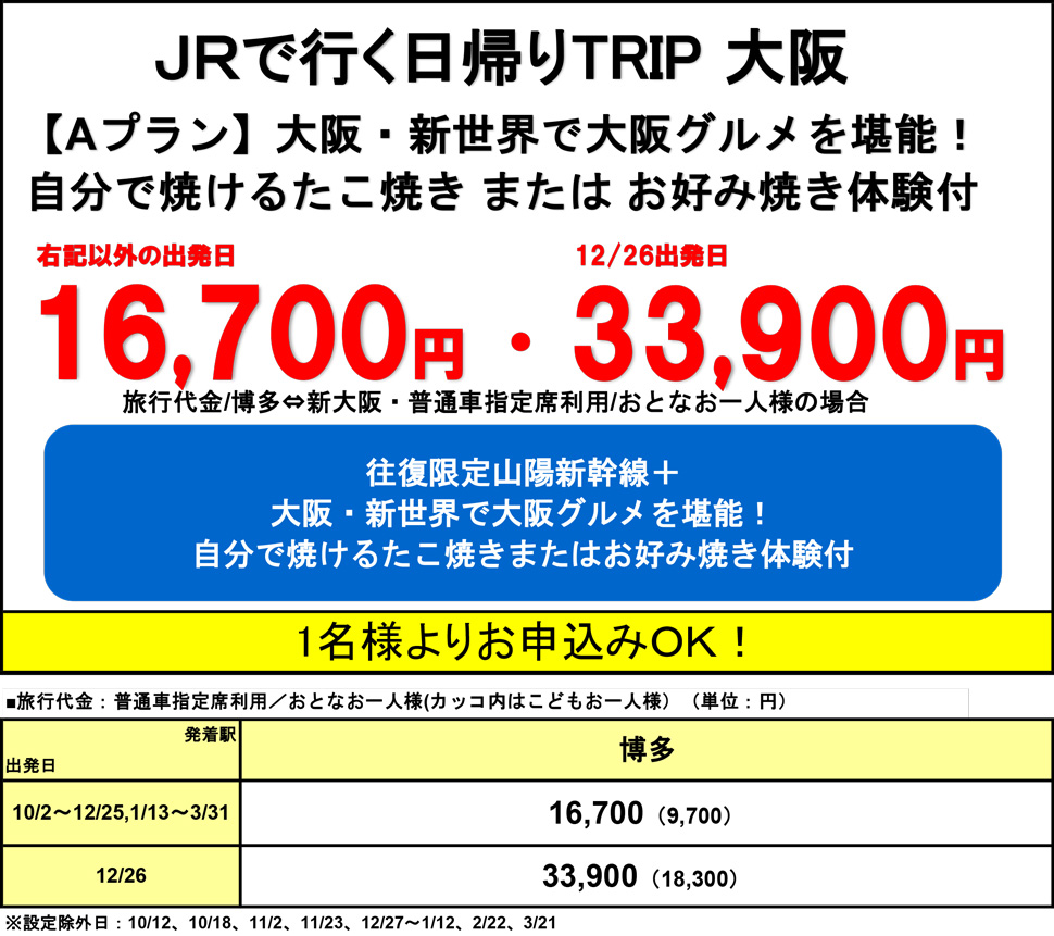 ※日帰りプランは切符ではありません。日帰りの募集型企画旅行です。お申し込みの前に必ず