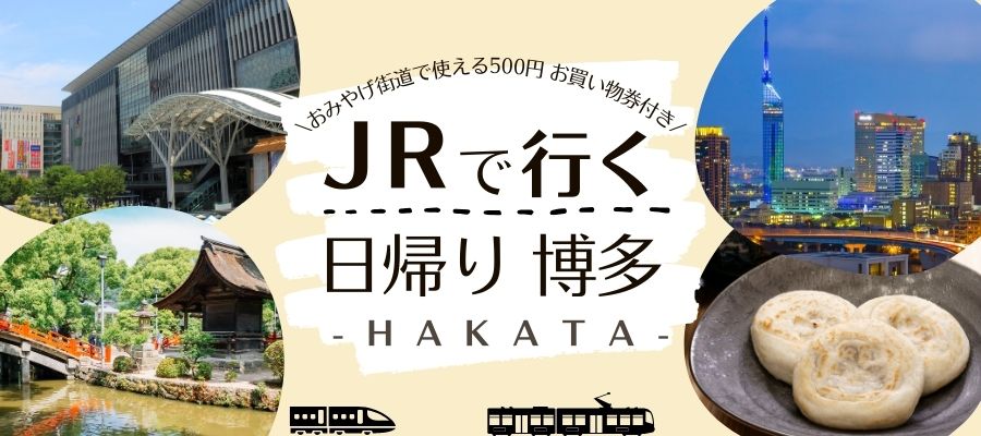 1名様よりお申込みOK★【おみやげ街道・九州恵みの玉手箱で使える500円お買物券付】JRで行く日帰り「博多」