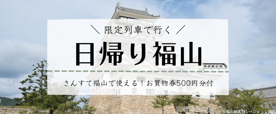 1名様よりお申込みOK★【さんすて福山で使える!500円分のお買物券付】限定列車で行く日帰り「福山」