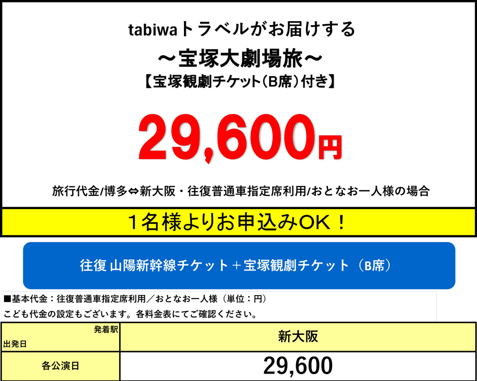 ・おとな(中学生以上)・こども(3歳以上小学生以下)の設定となります。(3歳以上から宝塚大劇場の座席が必要となります。)