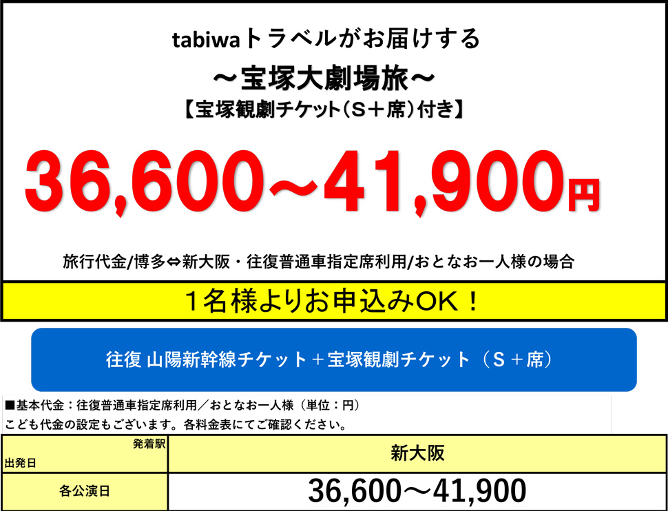 ※新大阪駅から宝塚大劇場までは約60分かかります。