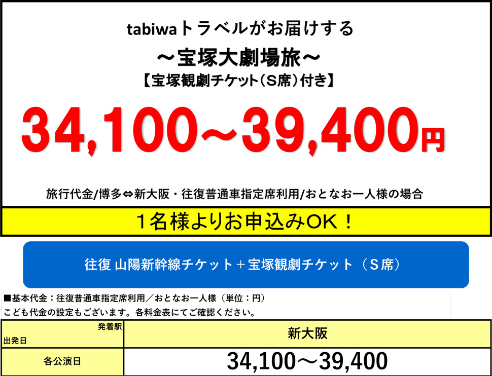 ・おとな(中学生以上)・こども(3歳以上小学生以下)の設定となります。(3歳以上から宝塚大劇場の座席が必要となります。)